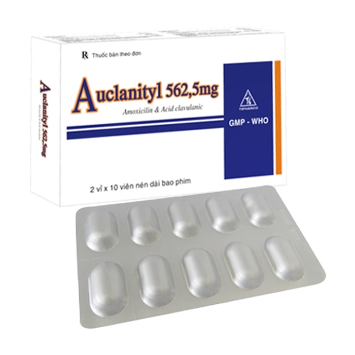Auclanityl 562.5mg Tipharco 2 vỉ x 10 viên (Amoxicillin Acid clavulanic)