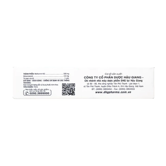 Glumeben 500mg/2.5mg DHG Pharma 3 vỉ x 10 viên (Metformin Glibenclamid)