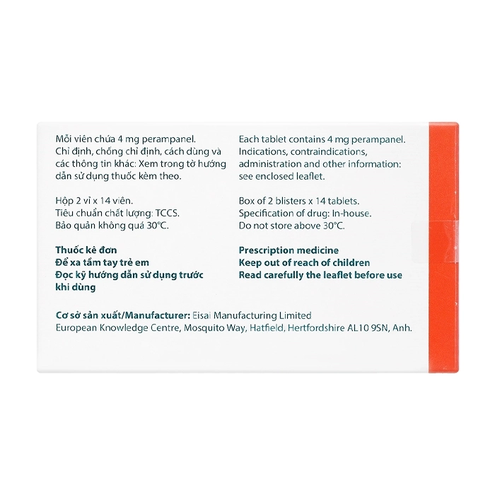 - Quên một liều: Vì perampanel có thời gian bán thải dài, bệnh nhân nên chờ và dùng liều kế tiếp theo lịch dùng thuốc.