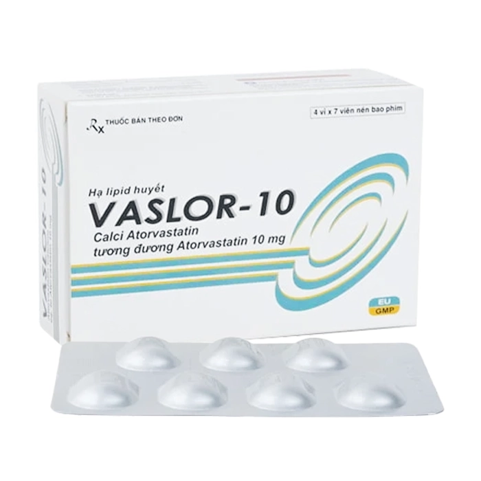 Thuốc VASLOR 10 - Atorvastatin 10mg, Hộp 4 vỉ x 7 viên