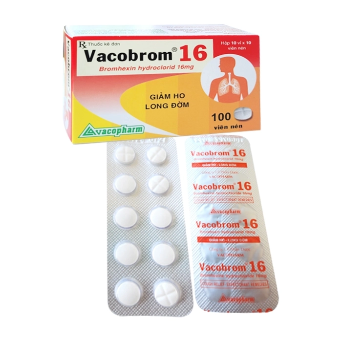 Vacobrom 16 Vacopharm 10 vỉ x 10 viên (Bromhexin hydroclorid)